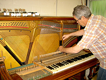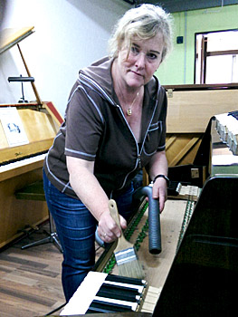 Klavierstimmer nennen und an den Instrumenten arbeiten.
